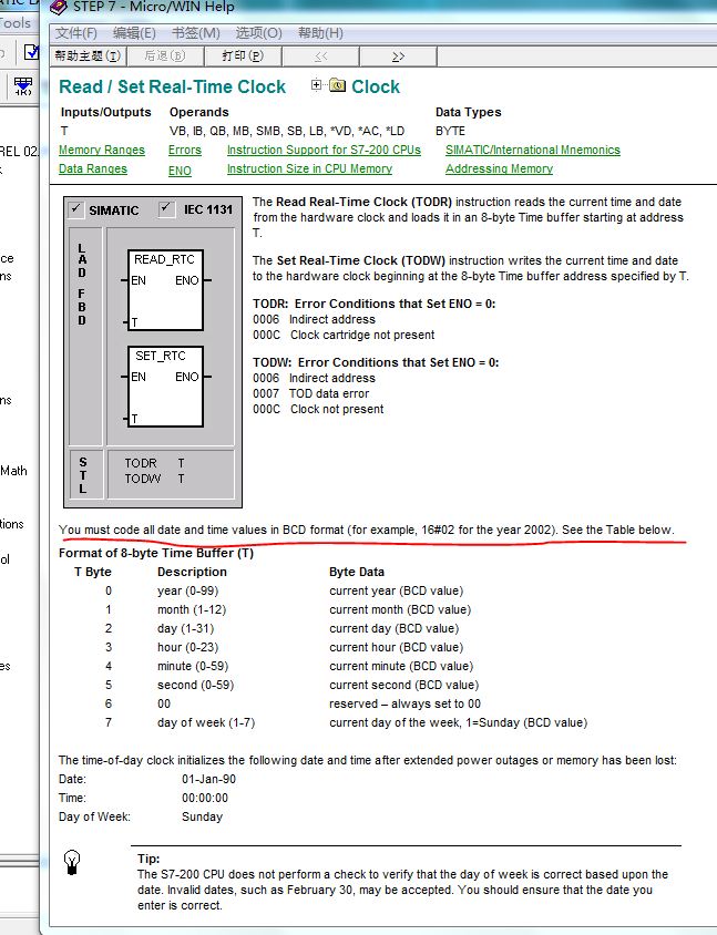 今天學習讀寫時鐘指令,看到幫助里一個內(nèi)容困惑不解,請各位大俠幫忙解釋一下,謝謝