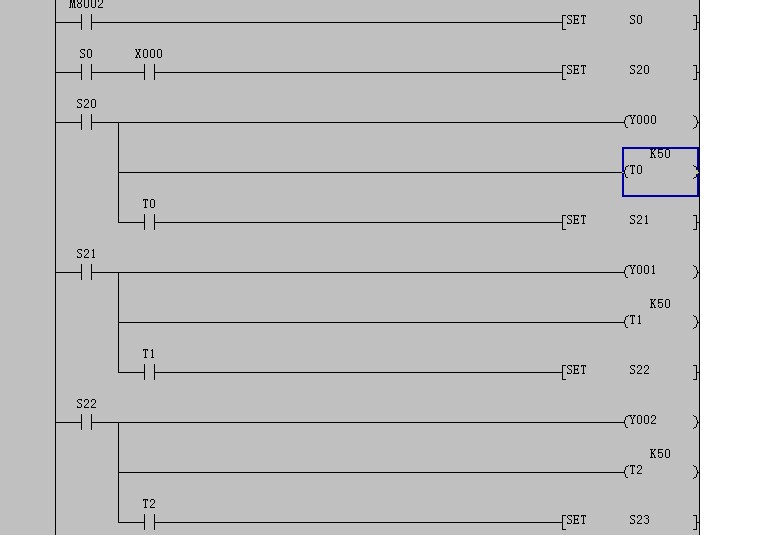 請問3樓,,STL S20是加在SET S20和RET之間嗎??怎么我加了,,STL S20變成不能變換的梯形圖了,,你能給個樣圖嗎