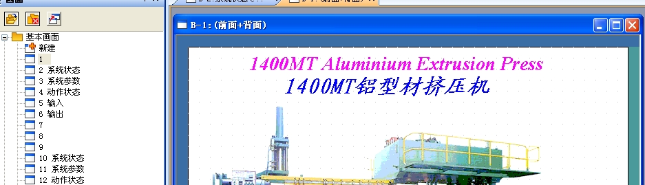 求金瀝1400T鋁擠壓機三菱觸摸屏程序?