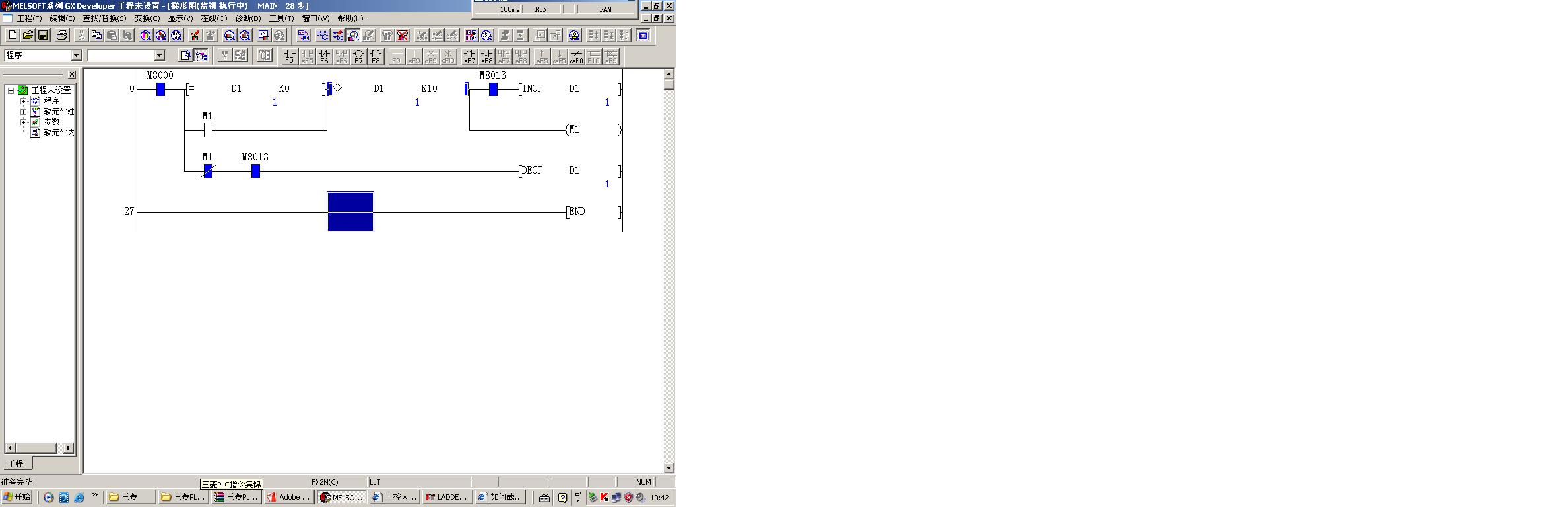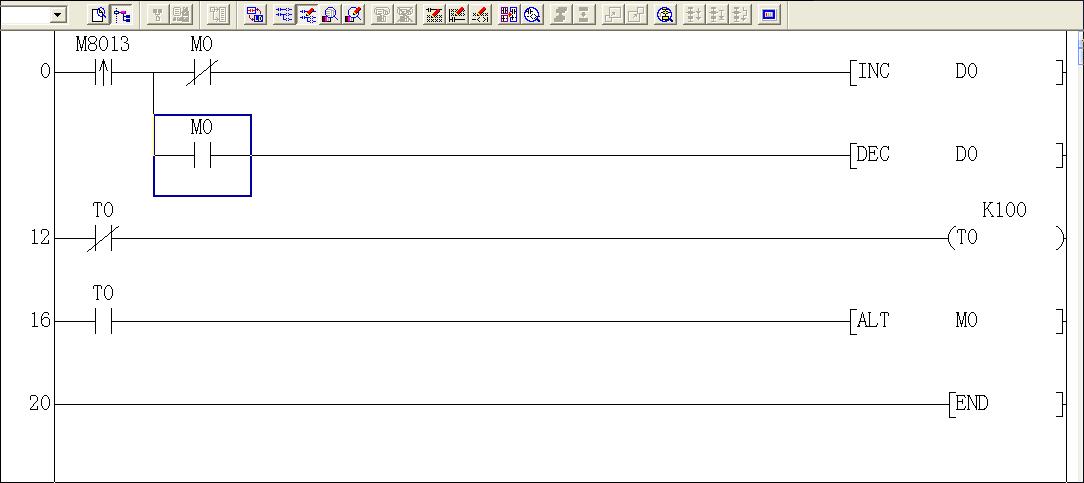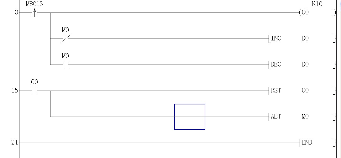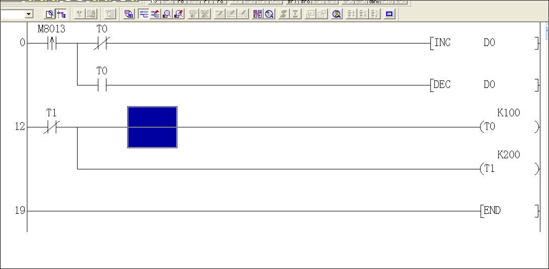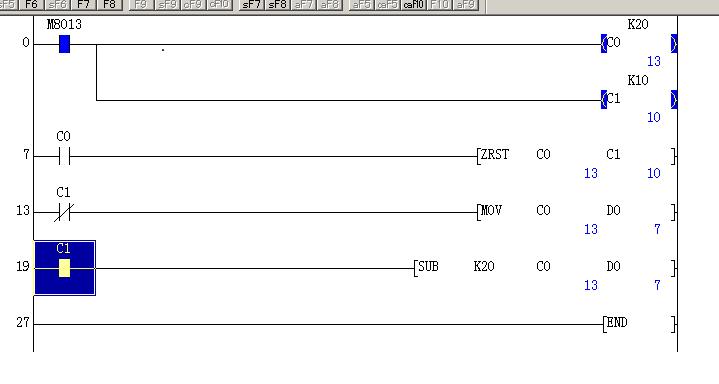 10樓的程式不能運行呀,我分析了,C200是32位計數器,照該程式輸入仿真會出錯呀,而且比較與  M8200處是在ON    開機后是向負數方向走的,  是我的仿真有問題嗎,
