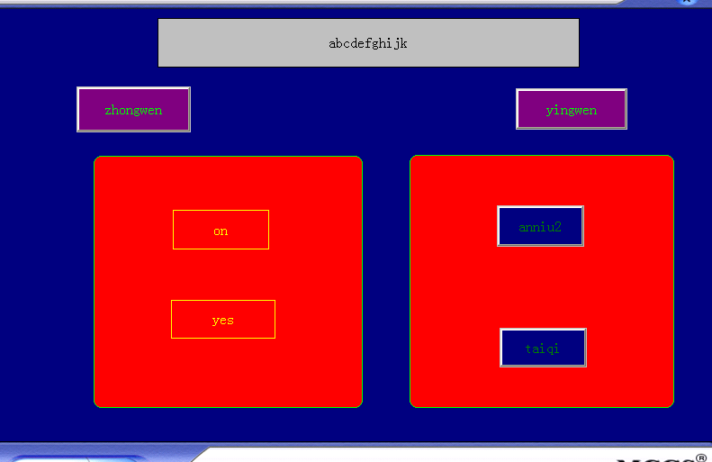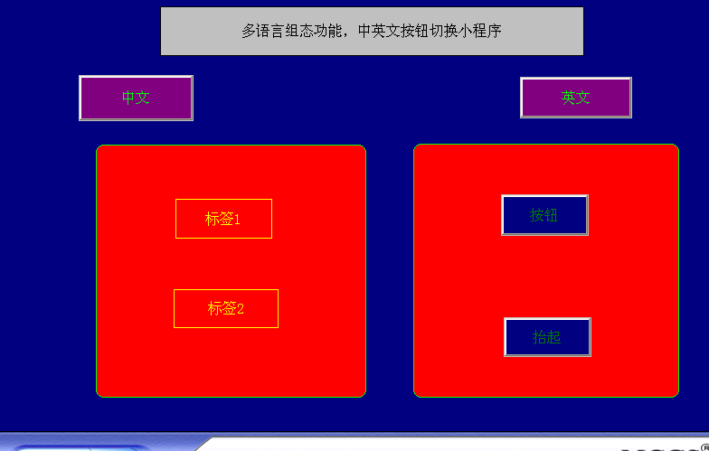 閑著沒(méi)事,做了小程序。昆侖通態(tài)觸摸屏中英文畫(huà)面切換功能。 上面圖片是仿真效果。