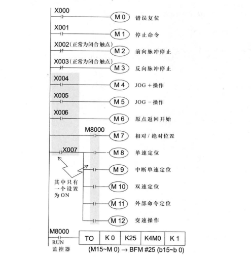 FX2N-1PG與FX2N-48MT相連,控制伺服電機,先測試一下1PG能不能動作,設置完BFM25后,因為只是測試,直接將1PG與PLC相連就行,程序的話手冊里面搬來的,就是將X輸入端改為中間繼電器以方便強制ON,給出復位,停止,脈沖等信號,發現1PG就電力端子亮,而其他相關端子不亮,怎么回事,程序,接線如下