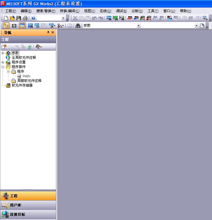 再執行了上述步驟后,在GX Works2中點擊工程→程序部件→程序→雙擊MAIN。不然,顯示程序的區域仍是一片灰色。