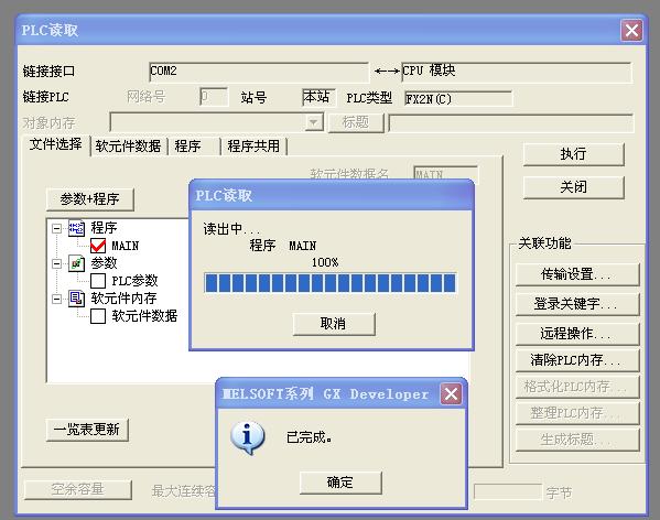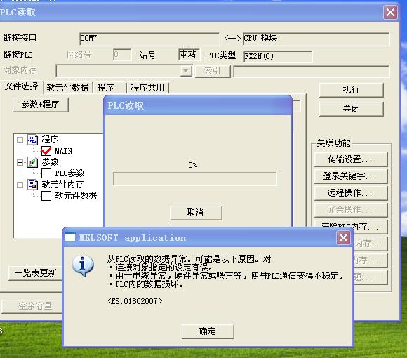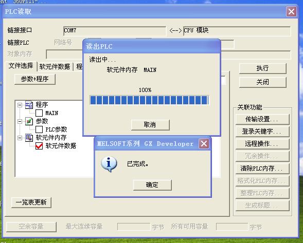 先讀參數和程序,讀完之后再讀軟元件內存……一起讀經常會出現通訊異常的