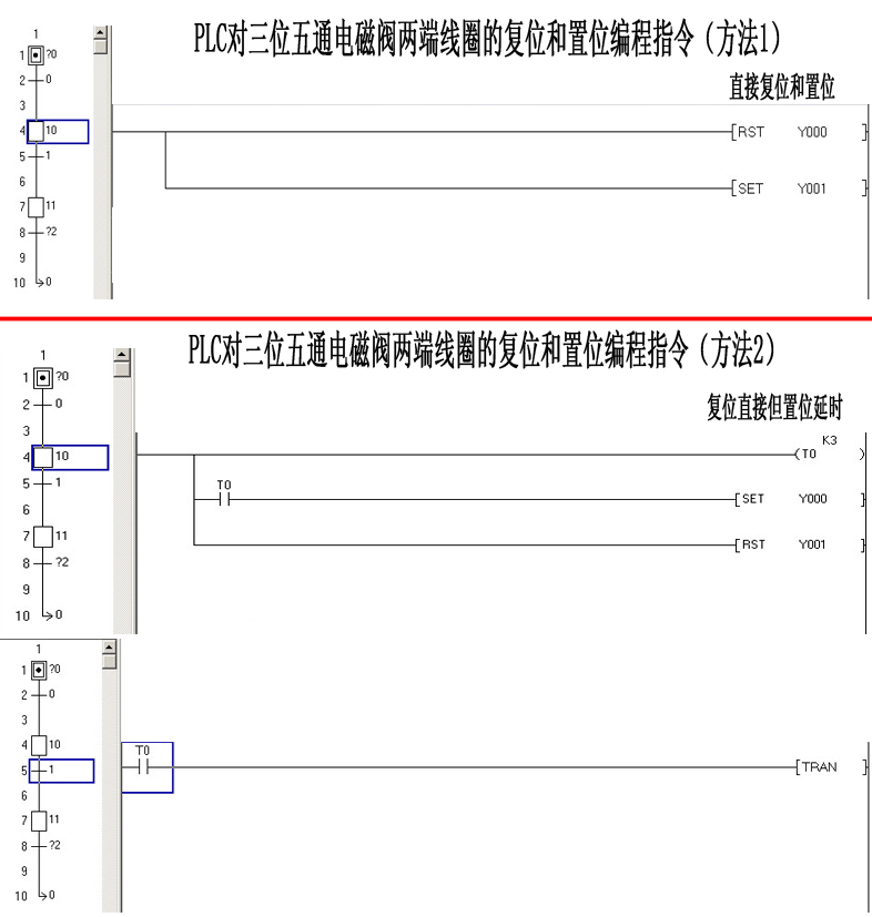 同時對三位五通電磁閥的兩端線圈操作復位和置位的指令,這種方法是否穩當,可以的話,哪種編程法更為穩定的,請老師指導下,或者還有別的更好的辦法.