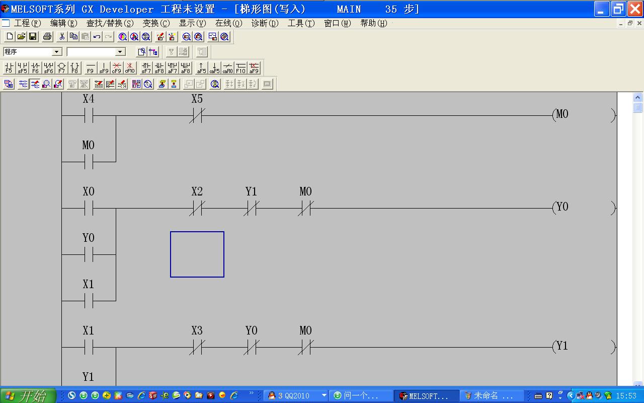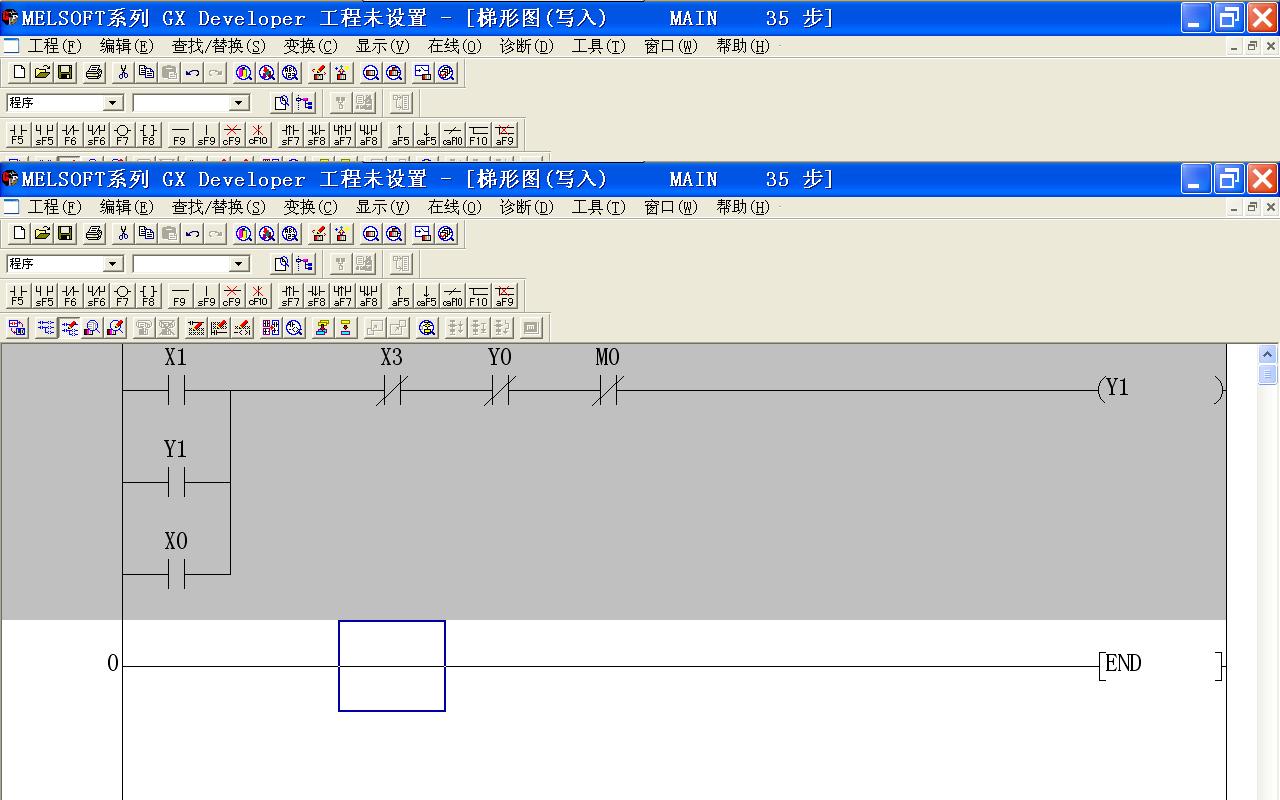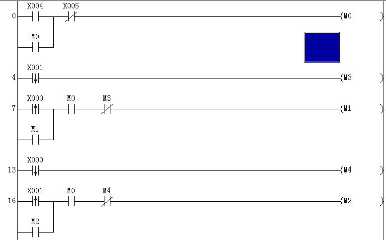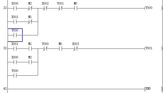 車庫外傳感器:X0 車庫內(nèi)傳感器:X1 門上限:X2 門下限:X3 啟動:X4 停止:X5 門上升:Y0 門下降:Y1