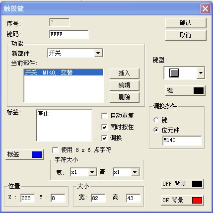 請教各位大蝦一個三菱觸摸屏F940GOT-BWD一個“觸摸鍵”功能的使用,就是當“調換”功能啟用后,標簽這個也會有相應的變化,比如在沒有點擊的時候“標簽”顯示“停止”,在點擊后“標簽”顯示“啟動”,要怎么改啊
