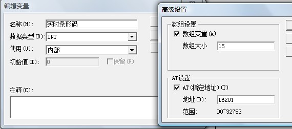 內(nèi)部數(shù)組變量 實時條形碼數(shù)組設(shè)置的地址值是D6201,是否代表意思是 實時條碼數(shù)組首字,即 實時條形碼[0] 的地址是D6201,然后依次往下排?