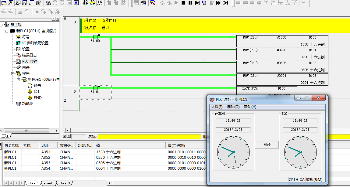 引用引用第12樓詩人的眼淚于2013-12-27 19:52發表的 :大俠,A351```A354的值是變化了。為什么左側PLC時鐘選項里的沒有變呢?還有為什么W1.00跑到下面去了是為什么啊?