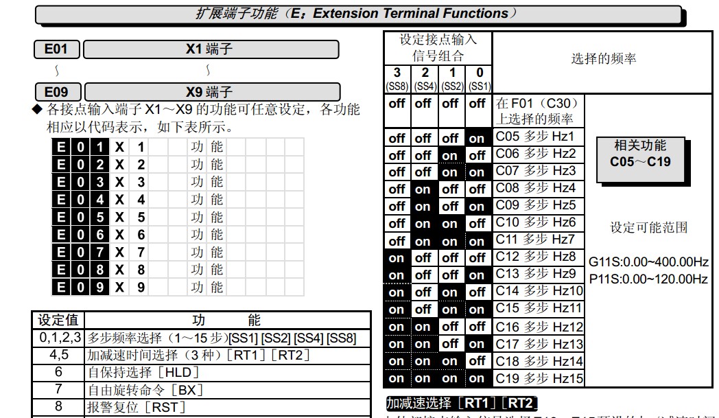 疑問:1如果X1------X4不是15種速度的選擇信號,那么變頻器里的設置為什么又對得上,難道是迷魂戰?