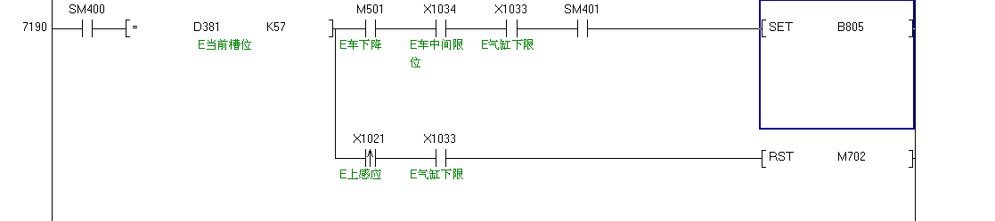 修改了個電鍍線程序,好嘛~下料傾斜氣缸不會動了,以為自己哪改錯了,但自己又沒改下料處的動作,查了下原程序,然后我就直接懵逼了,原程序也是錯的,可可可之前這程序明明正常在做的,難道在我上傳程序的那一剎那,程序變化啦?還是Q系列的PLC能存儲兩個程序,一個用來運行,一個用來上傳?然后我上傳了個錯誤的程序?有圖有真相!最詭異的是這SM401加在那是怎么讓B805置ON的。。。。。。。。還有吧這程序錯了還錯的這么工整有條理,這以后還要密碼干啥,完全不怕原程序被人剽竊