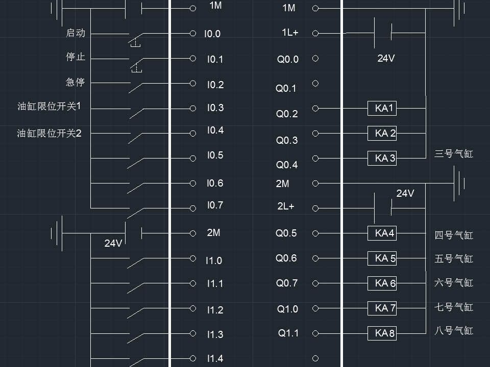 5號氣缸Q0.6松開,七號氣缸Q1.0回位,6號缸Q0.7松開。