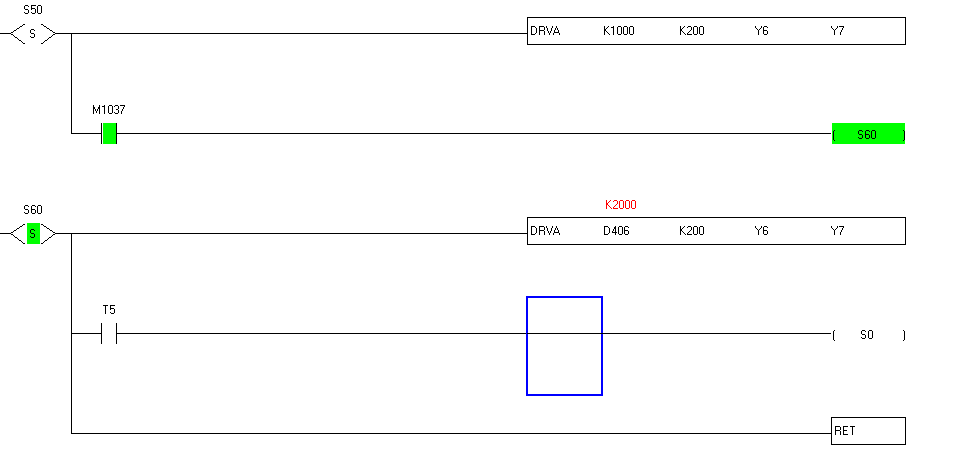 你這是絕對位置,肯定不動,兩個指令位置一樣啊,S60中K1000換成別的數