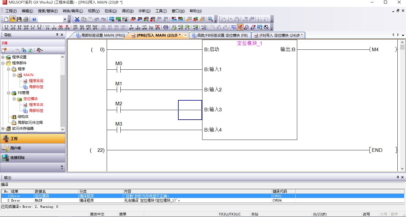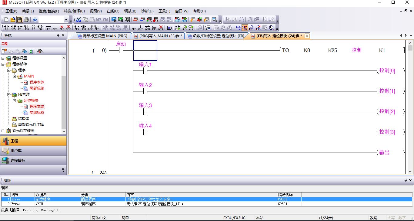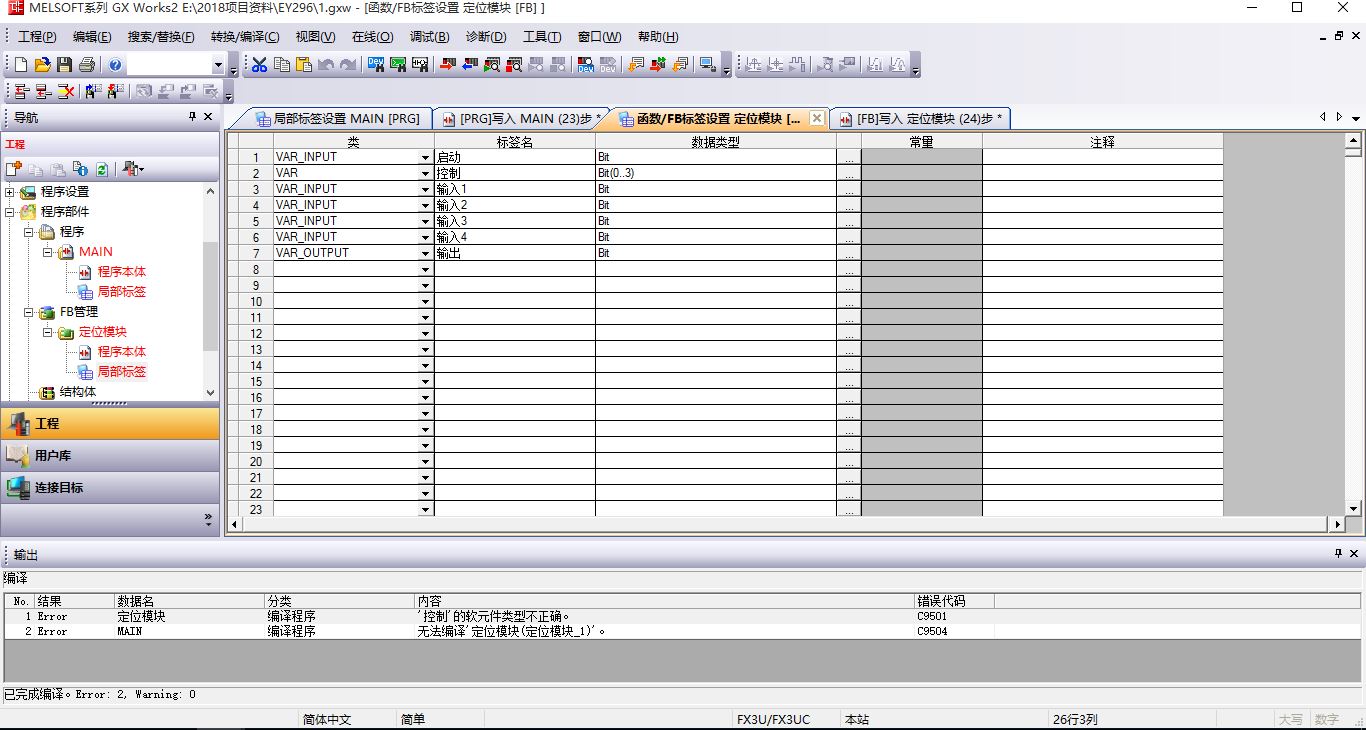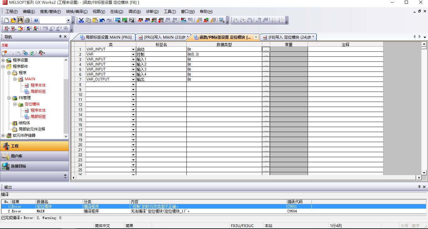 加上輸出后,FB程序確實可以在主程序那里調用了,但是調用后主程序編譯又報錯