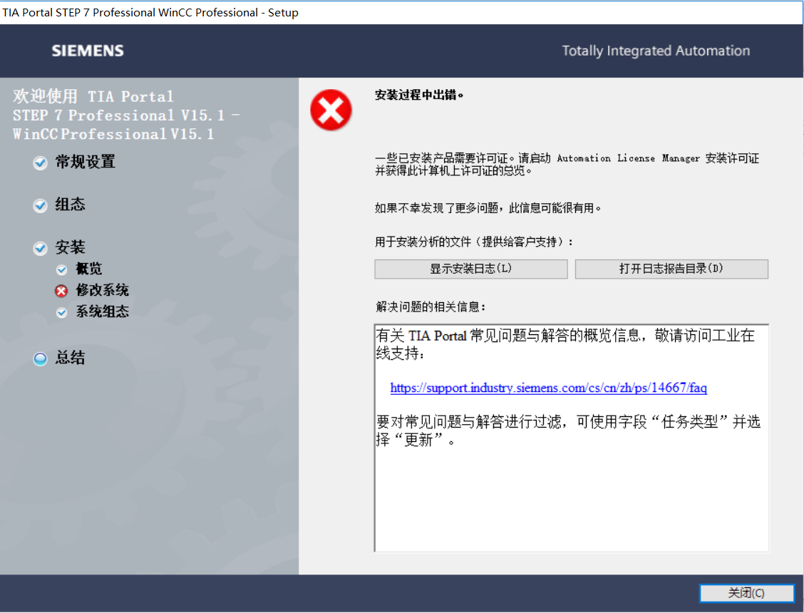 安裝TIA V15.1提示下圖,安裝TIA V15.0一點問題都沒有。有那位大神幫忙看看啊