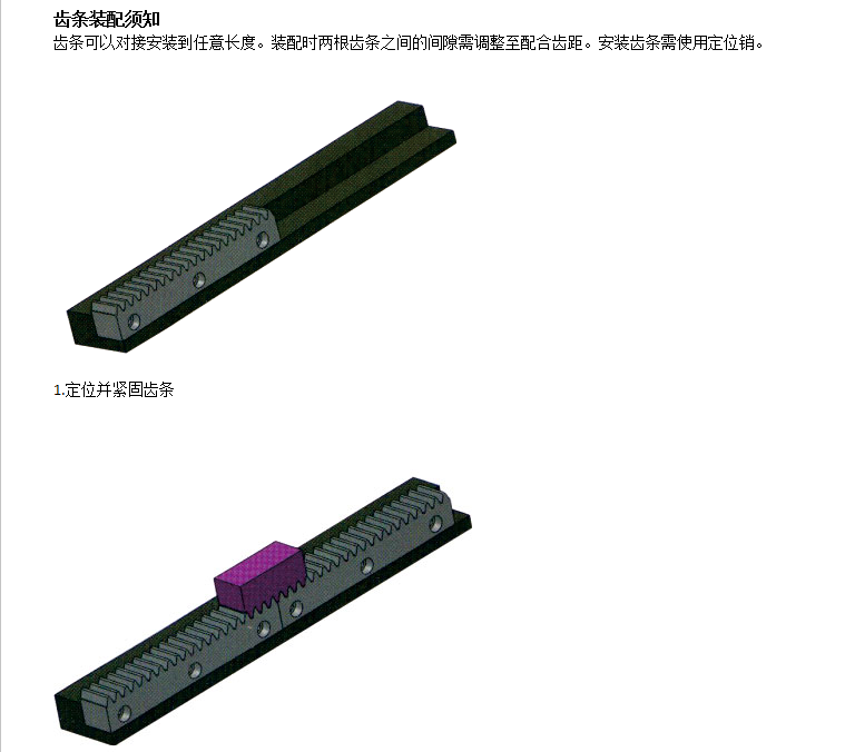 齒條的齒廓為直線而非漸開線(對齒面而言則為平面),相當于分度圓半徑為無窮大圓柱齒輪。分為直齒齒條和斜齒齒條,分別與直齒圓柱齒輪和斜齒圓柱齒輪配對使用。