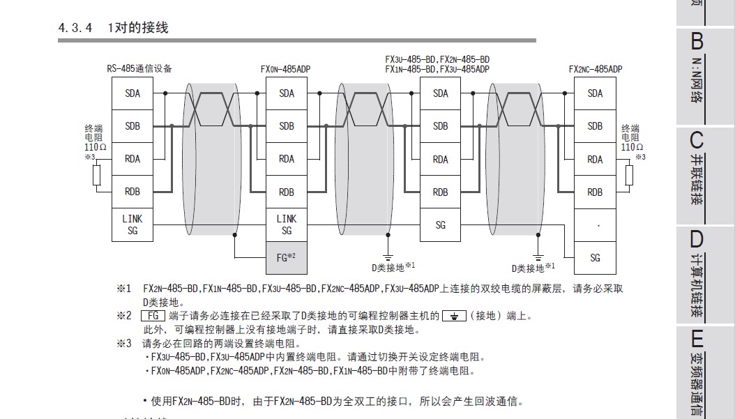 我用一臺FX3U控制兩臺步進電機,需要通過RS485讀取步進電機狀態與轉速。。。步進廠商告訴我RDA與SDA接D+,RDB與SDB接D-。試了兩天始終通訊不上,想問問大家是這樣接的嗎。。。。