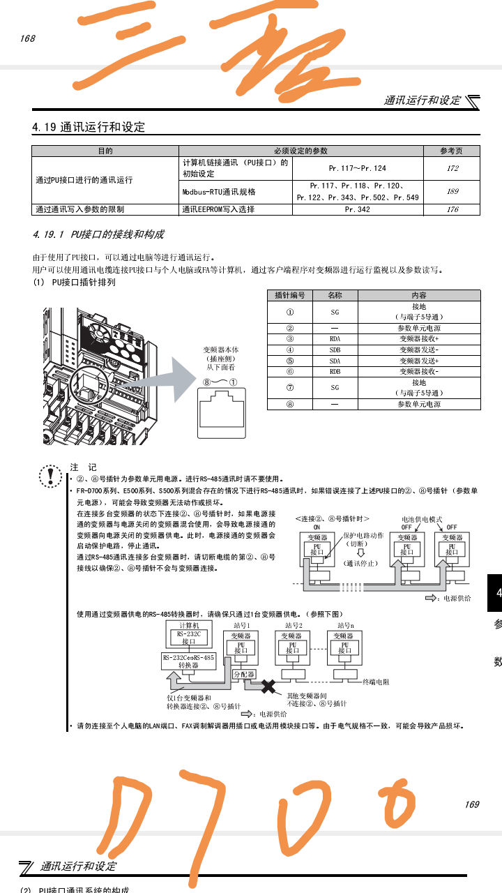 請教大神:西門子PLC S7-200與三菱D700變頻器用RS485通訊控制,怎么接線呀?要求即能控制變頻器的啟動、停止、正反轉、頻率,也能讀取變頻器的電流、電壓、頻率、正反轉等。