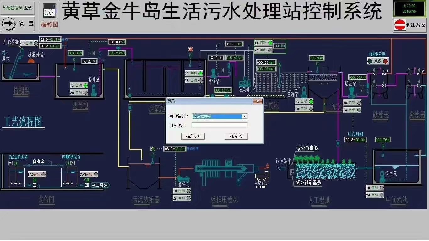 郴州黃草金牛島生活污水處理系統,PLC為西門子smart200,運行數據通過遠程模塊采集,實現數據的遠程網頁監控,手機APP監控,和組態的遠程監控。