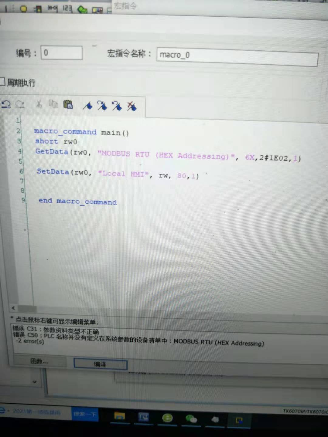 TK6070沒有71那樣的RTU16進制地址?這段宏指令是什么意思?我對威綸的屏不是很懂?GETDATA取數據,SETDATA設置數據?