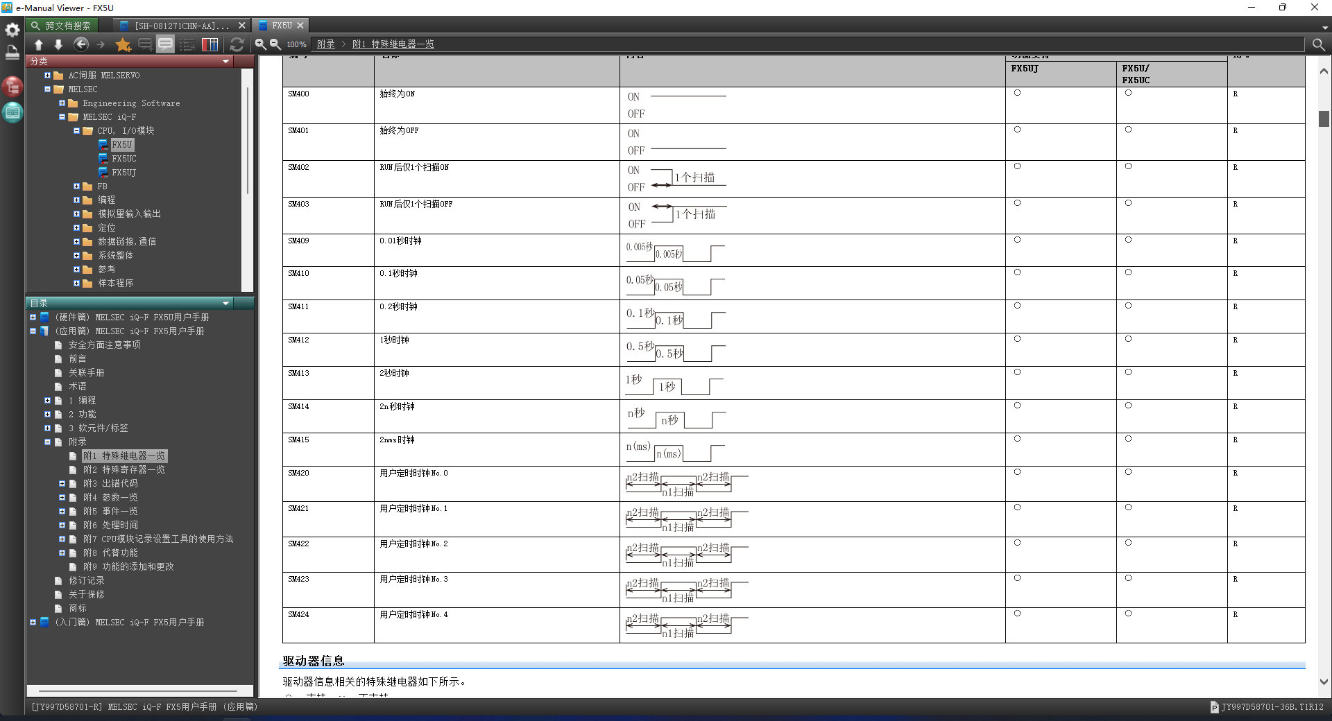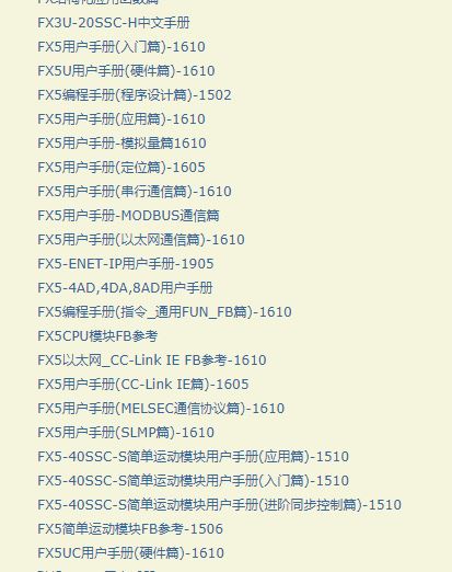 引用引用樓主562981555于2021-11-03 15:57發(fā)表的 關(guān)于FX5U程序編寫問題 :FX3U常on是M8000,F(xiàn)X5U是SM400,誰有FX5U軟元件手冊可以分享下么,都不知道5U怎么用,感覺跟3U差別太大了