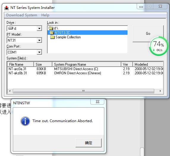 傳輸模式,上電既顯示語(yǔ)言選擇,不能重新下載系統(tǒng),通訊超時(shí)上電既顯示:手冊(cè)說(shuō)明表示系統(tǒng)程序丟失,需要重新下載系統(tǒng)程序[attachments=263579] 系統(tǒng)程序不存在或不正確的下行提示:System Program not Exis or incorrect翻譯:系統(tǒng)程序不存在或不正確的