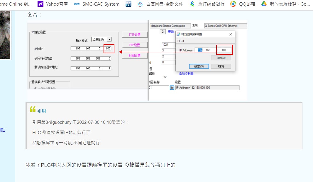 引用引用第7樓以前以后于2022-07-31 15:13發(fā)表的 :公司有兩臺(tái)設(shè)備 PLC的IP跟觸摸屏的IP地址都是設(shè)置的一樣的 并不是最后一位設(shè)置的不一樣