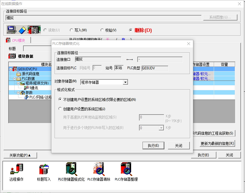 有沒有大佬知道三菱PLC存儲格式化,刪除的是什么東西。會不會把數據寄存器(D)的數據刪除?
