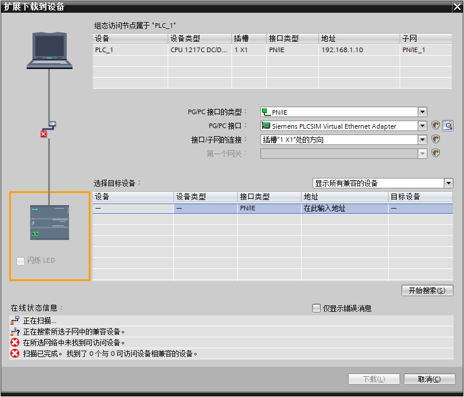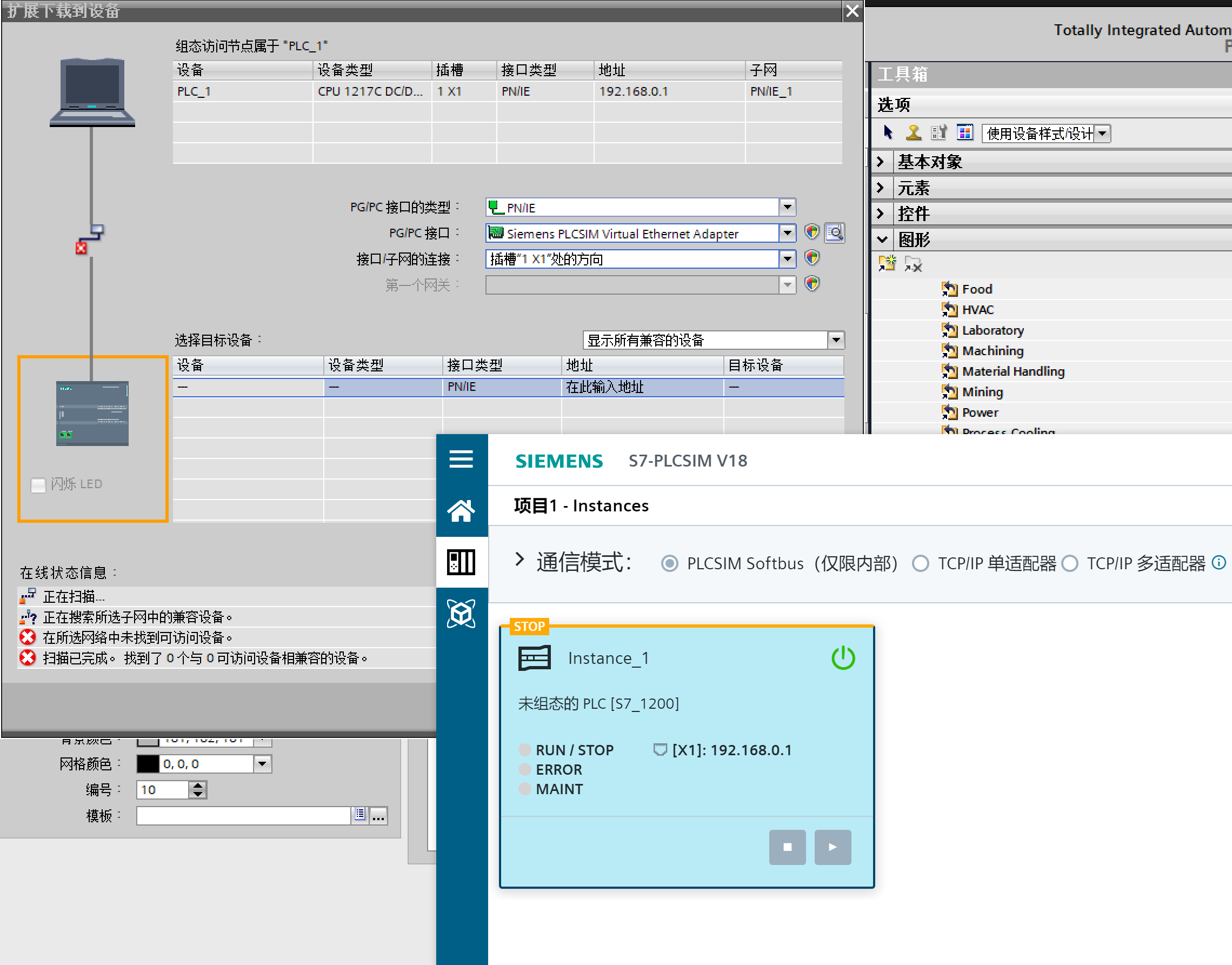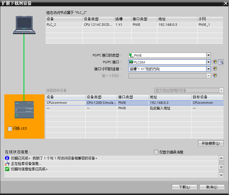 從你的圖片上看是用的你用的PLCsim v18來仿真,因為你的通訊模式選的是PLC SIM Softbus。所以在你的PG/PC接口一般默認是PLCSIM。隨便說一下,一般用S7-PLCSIM Advanced 仿真時,PG/PC接口才選擇Siemens PLCSIM Virtual Ethernet Adapter,且這個Siemens PLCSIM Virtual Ethernet Adapter虛擬網口要設置與PLC同網段。;另外S7-PLCSIM Advanced 仿真目前不支持S7-1200PLC的。