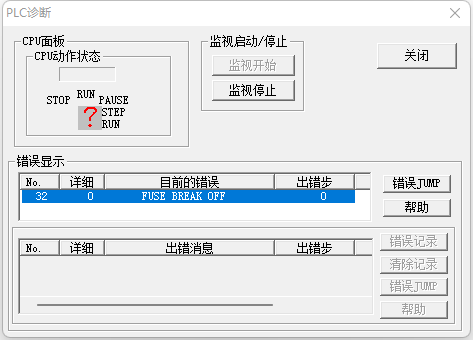 那兩個應該是保險絲,測量了,是好的。用軟件"PLC診斷",又顯示“FUSE BREAK OFF”,保險絲斷開。 這樣,就不知道問題在哪里了 |