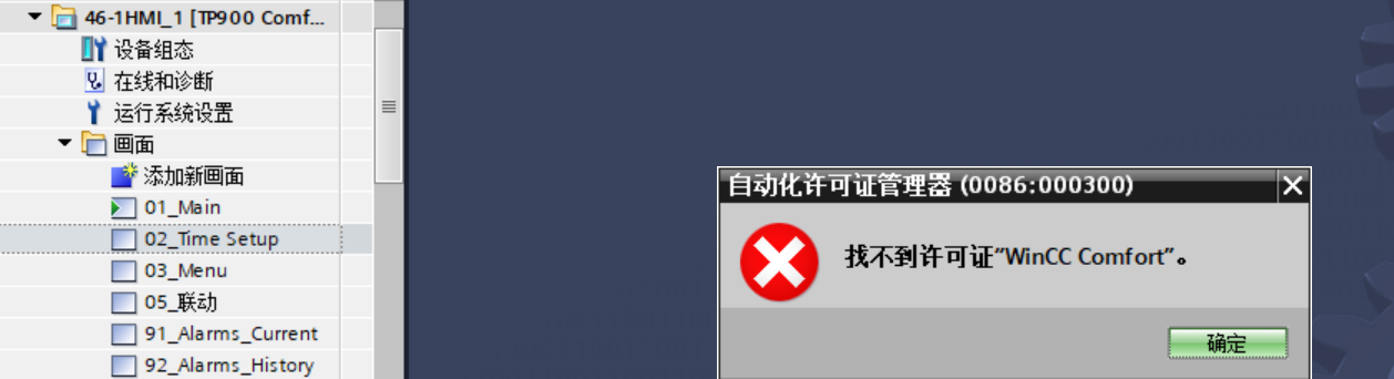 西門子觸摸屏畫面打不開是什么原因?彈了一個這個彈窗說找不到許可證,不知是啥意思,求指點,謝謝!