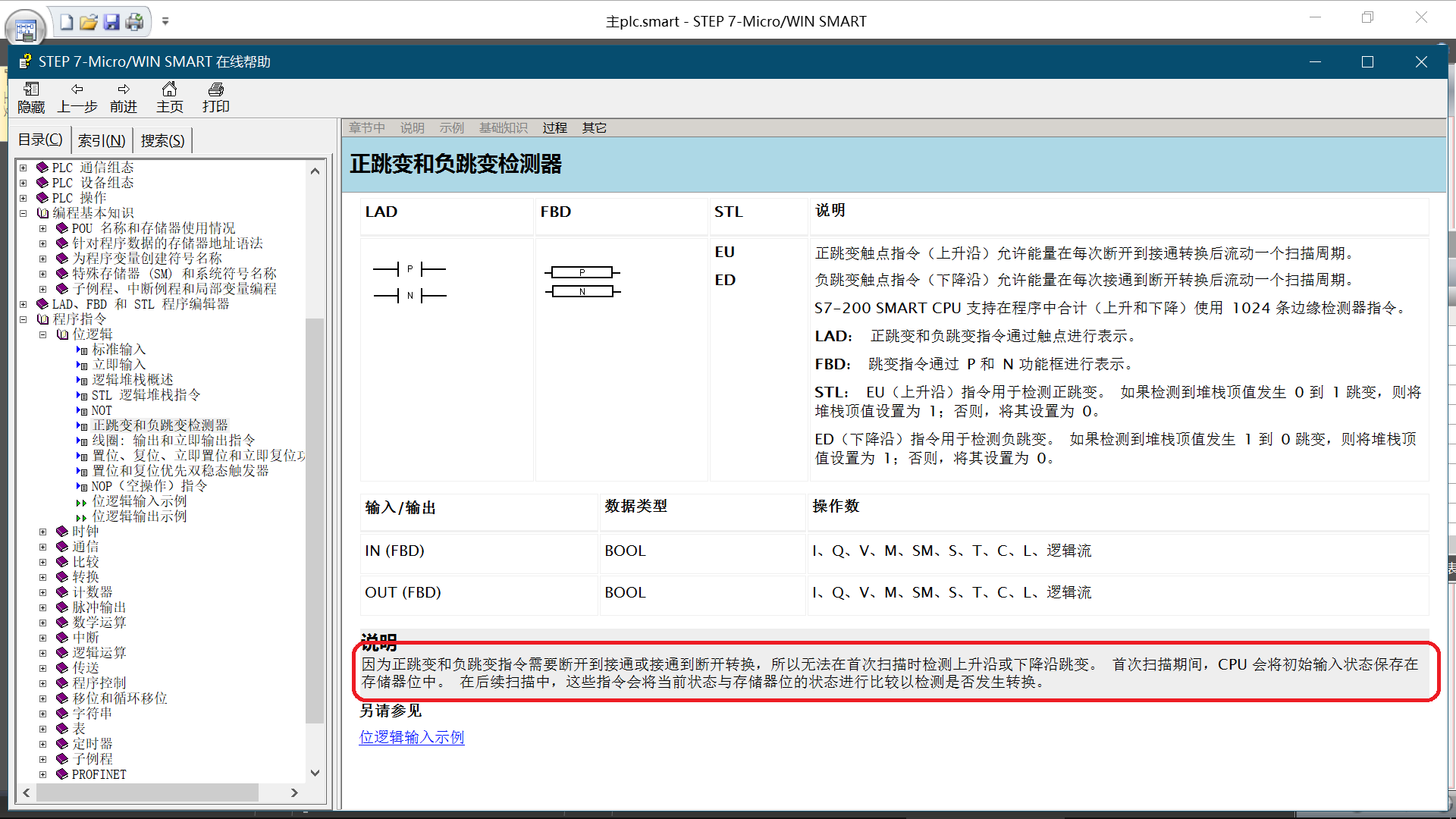 在PLC上電后的第一個掃描周期內條件都已經滿足了,但是S7-200smart在第一掃描周期內是不處理邊沿信號的(在幫助里可以查找邊沿指令的使用說明),所以可能就是這個原因引起的Q0.5不亮。