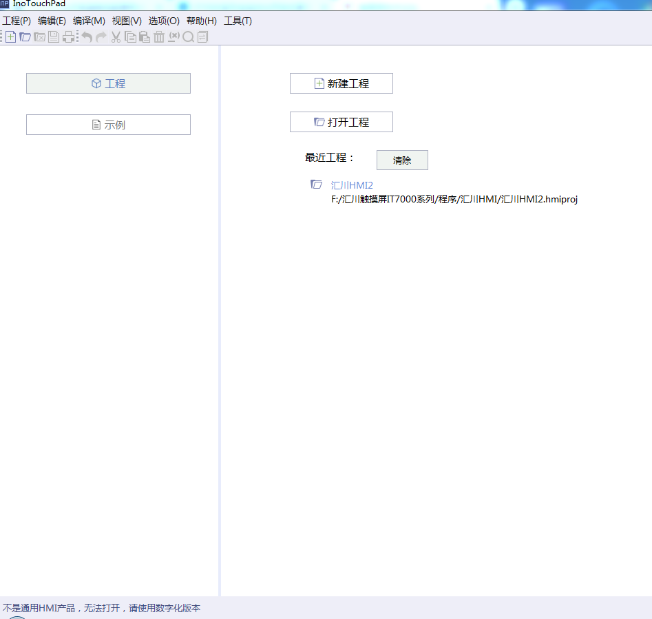 用匯川觸摸屏InoTouchPad軟件打開IT7000文件時提示:不是通用HMII產品,無法打開,請使用數字化版本,到官網也沒找到,有大佬知道是怎么回事嗎?