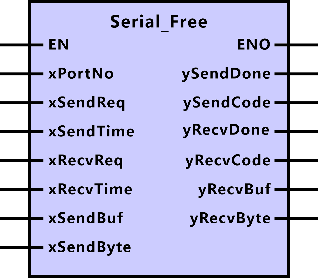 根據串口自由協議通信發送和接收數據實際情況,我們這里約定封裝完成的各品牌PLC串口自由協議通信功能塊、指令庫或用戶庫如下圖所示。