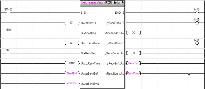 由此可見,不同品牌PLC實現串口自由協議通信,使用指令不同,編程不同。為此有必要進行PLC串口自由協議通信標準化編程,將不同品牌PLC的串口自由協議通信封裝成具有相同輸入參數和輸出參數的功能塊、指令庫或用戶庫,以便大家方便、快捷、迅速的使用PLC串口自由協議通信。