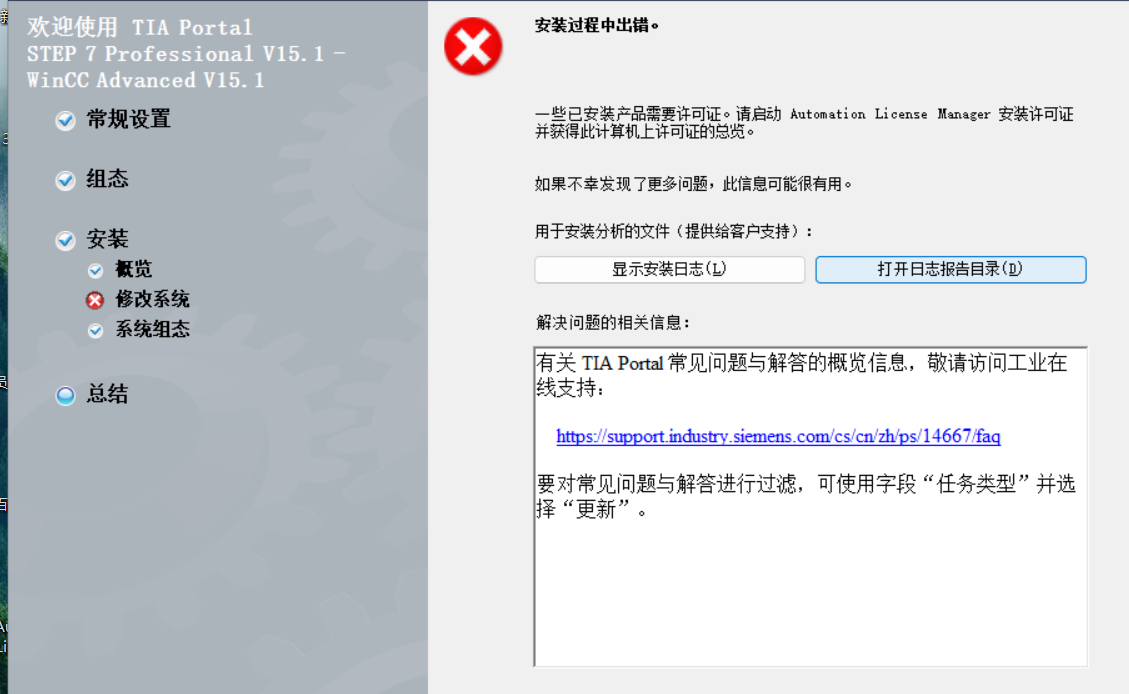 之前就安裝使用過高級版和專業版,刪除過15.1高級版和經典wincc7.5,不知道有沒有刪除干凈或者誤刪了什么文件或者關閉了什么文件