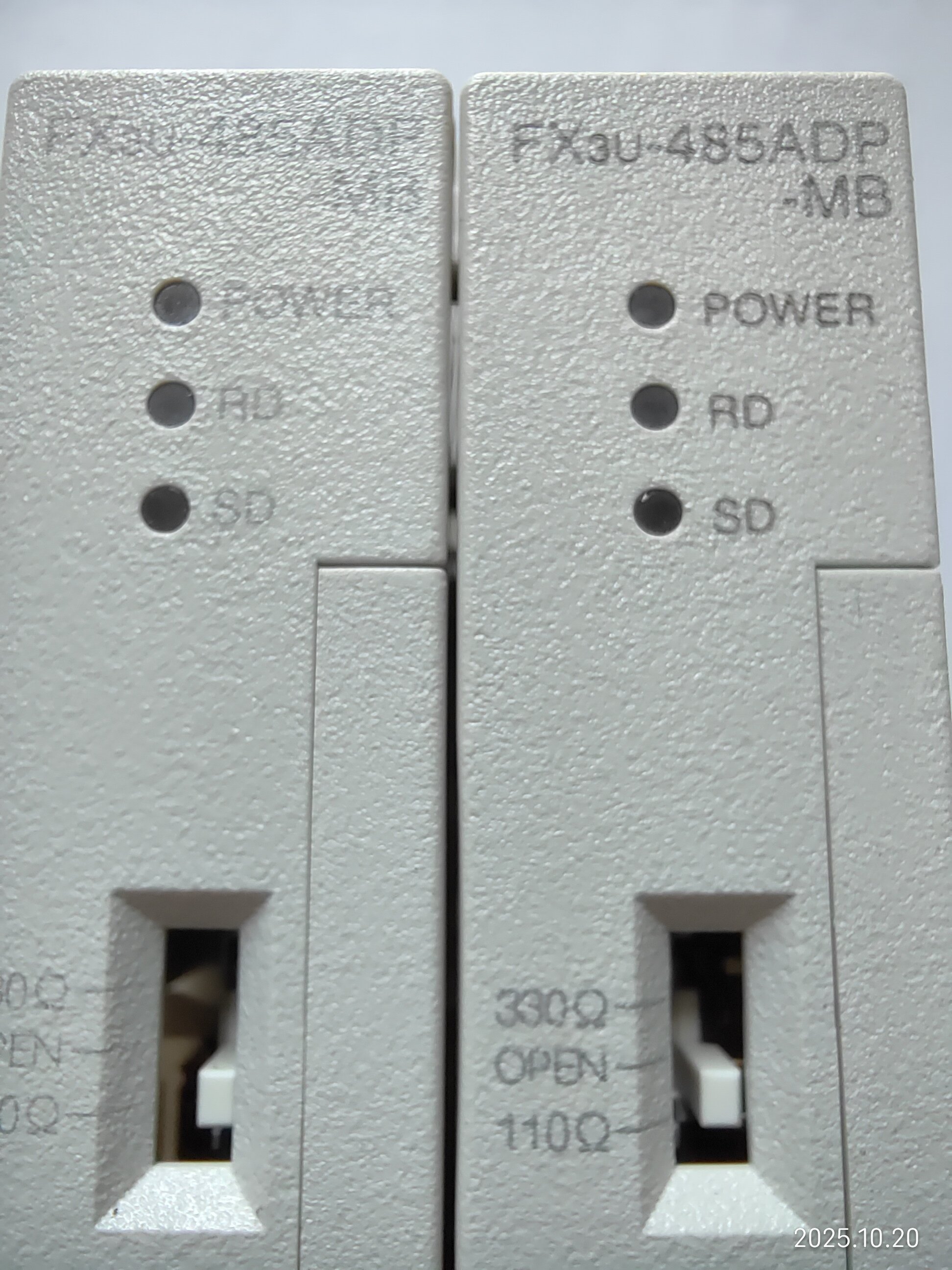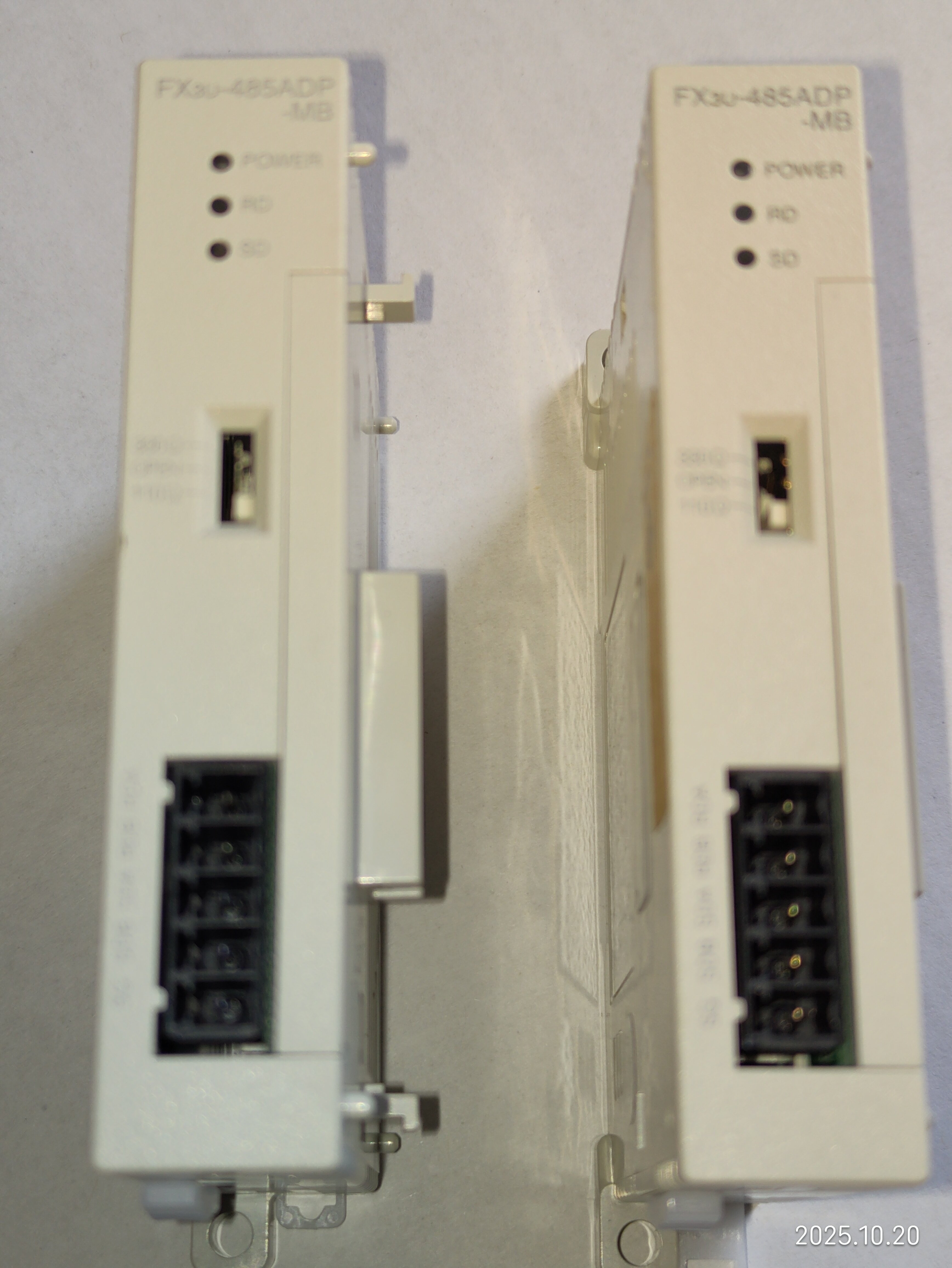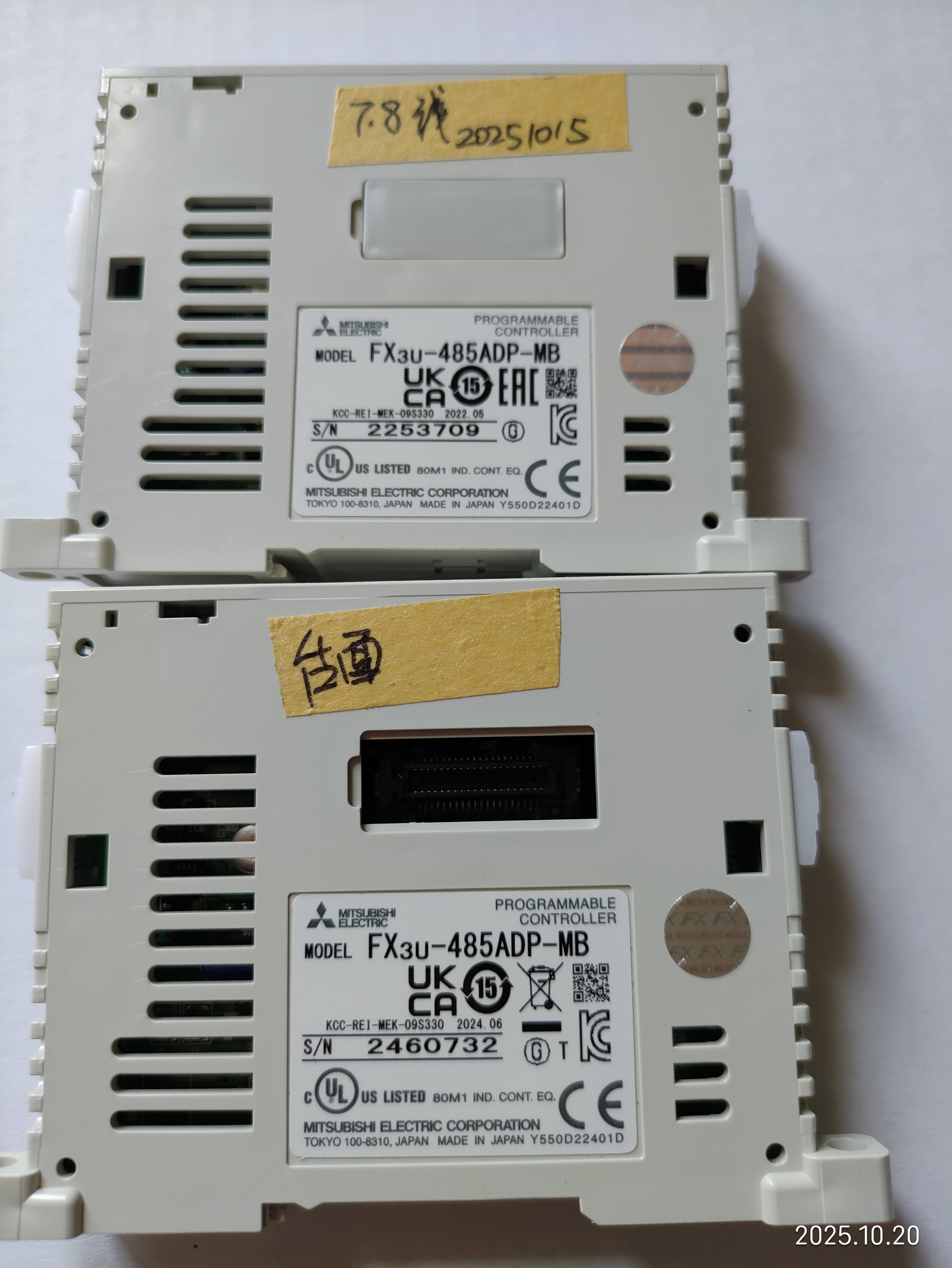 備注“7,8線”的是今年3月上線使用的,用于和主PLC 485ADP-MB通信,十一假期回來發(fā)現(xiàn)有問題,把備注“臺面”的換上去也用不了,現(xiàn)場用電腦直接通信也連接不上,后來買了新的485ADP-MB和485BD一起換了,才連接上。