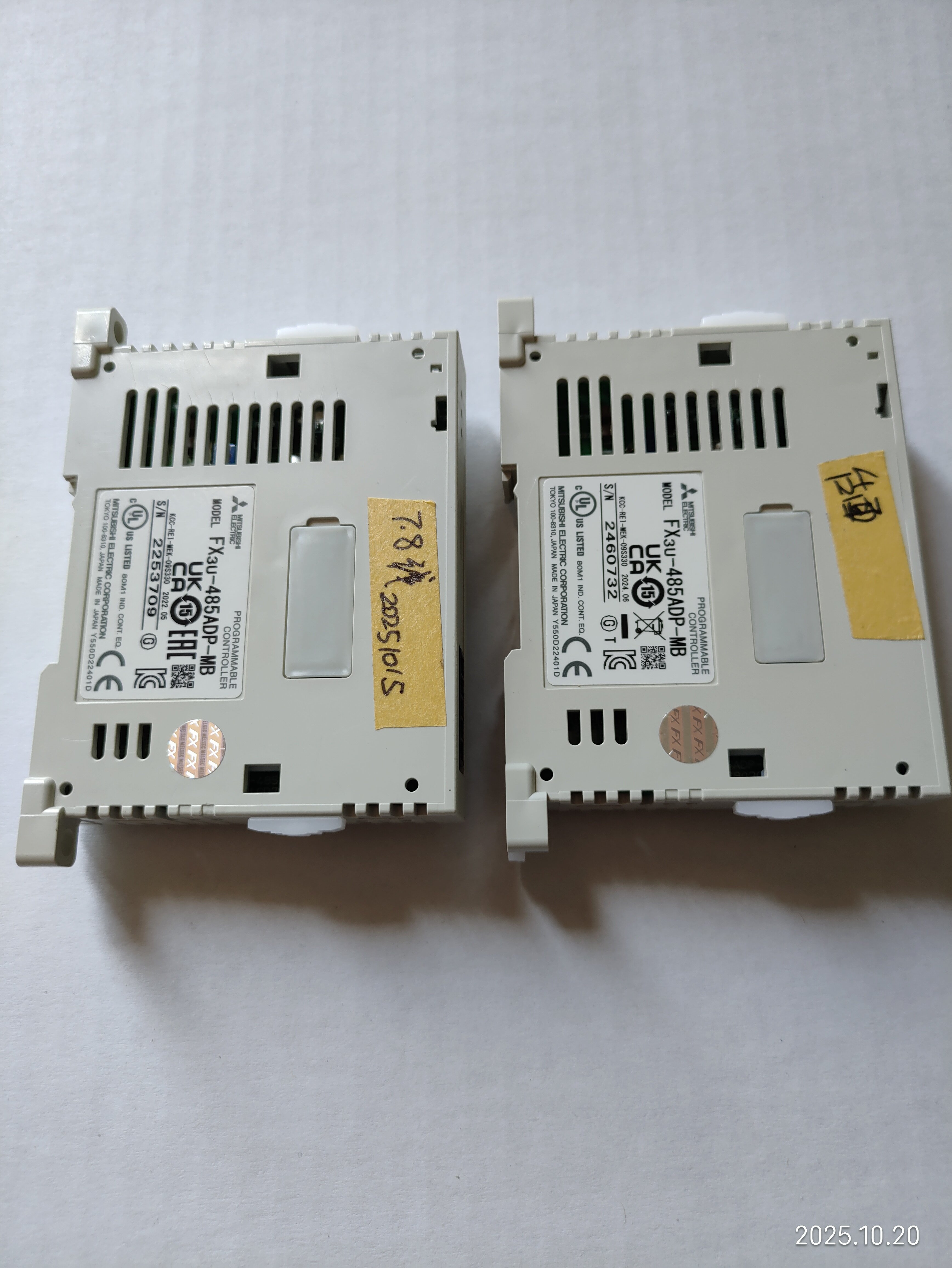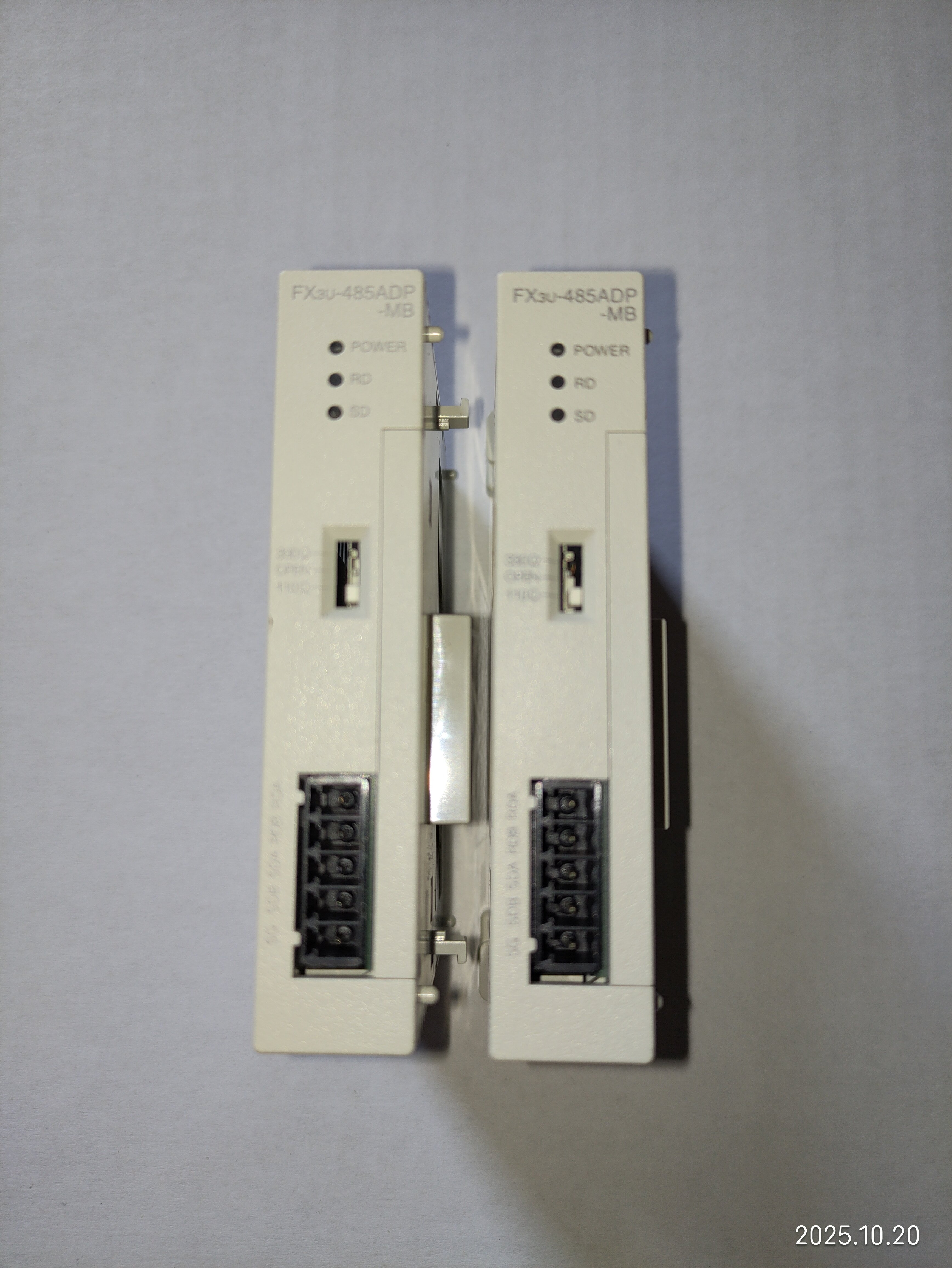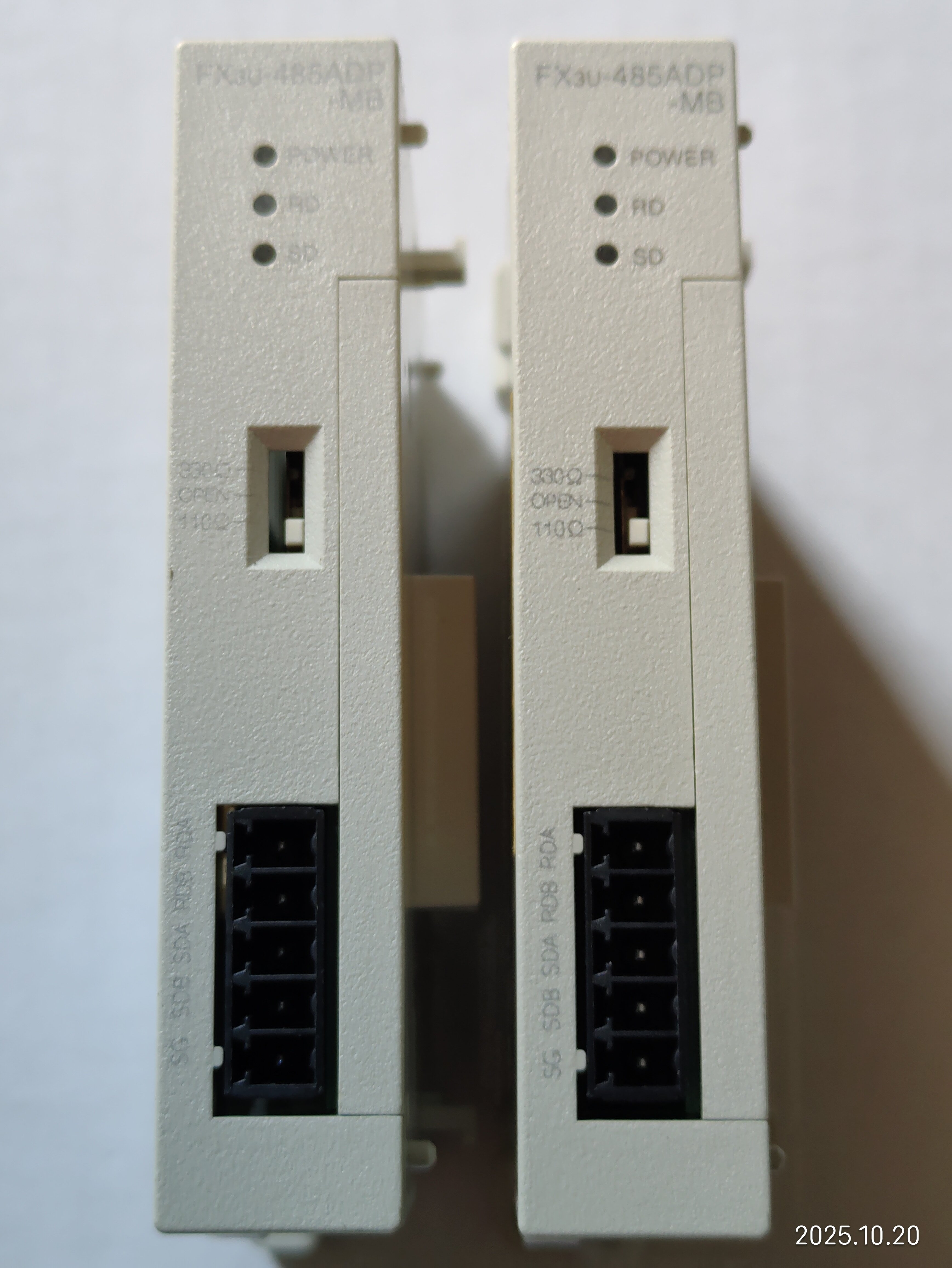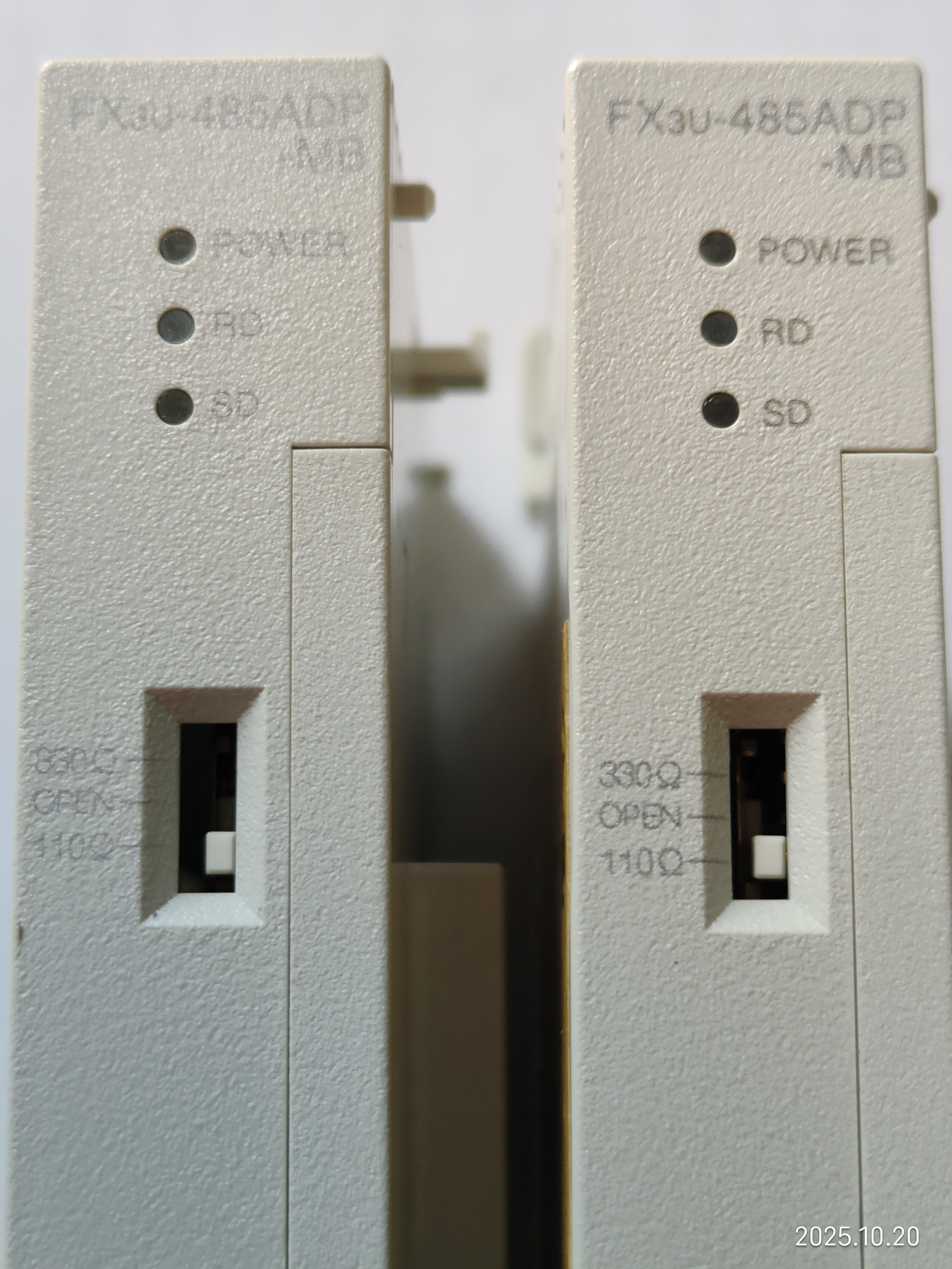 備注“7,8線”的是今年3月上線使用的,用于和主PLC 485ADP-MB通信,十一假期回來發(fā)現(xiàn)有問題,把備注“臺面”的換上去也用不了,現(xiàn)場用電腦直接通信也連接不上,后來買了新的485ADP-MB和485BD一起換了,才連接上。