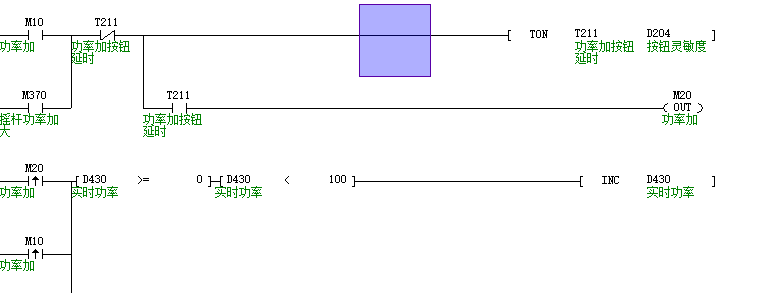你這個會加兩次的,M10接通加一次,M10接通到時間又加一次。然后M10長按會導(dǎo)致M20到時間會置位復(fù)位置位復(fù)位不停地加