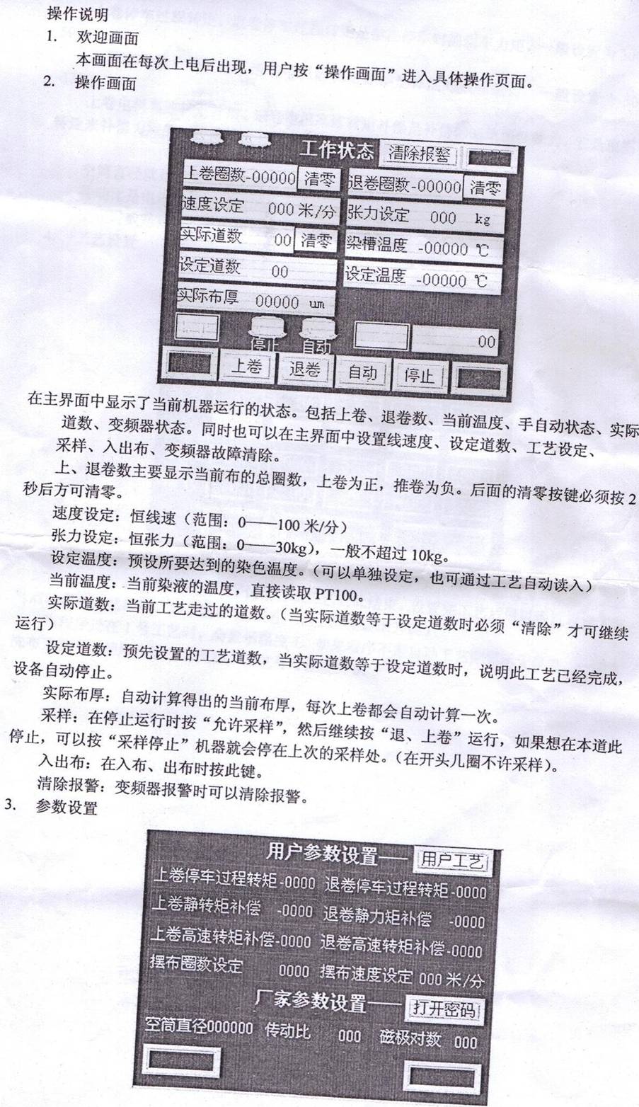 花了一番周折,鞍終于弄到一個染色機說明資料。但是上面的有些東東咱不知道如何和速度串起來。