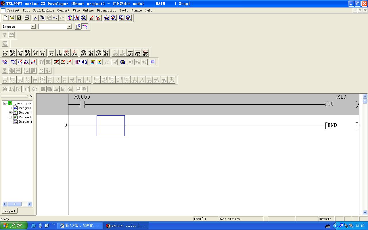 我剛開始學習PLC。嘗試著編程,用的是GX-devoloper6。中文版。在一個T型圖中,想寫入時間控制T0,可這個記時器怎么也找不到指令來完成。請教高人了。