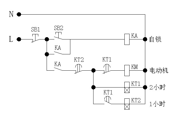 用一個微電腦時間繼電器,24小時可控制的那種,具體型號不記得了。設置好控制時間就行,用它來控制電動機的運轉電路。
