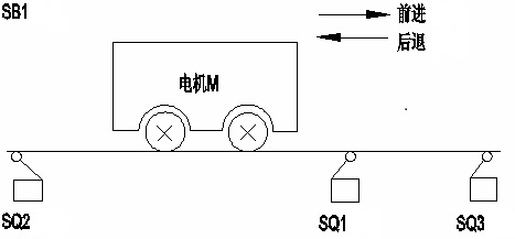 (3)第二次后退碰到限位開關SQ2時,小車停止。