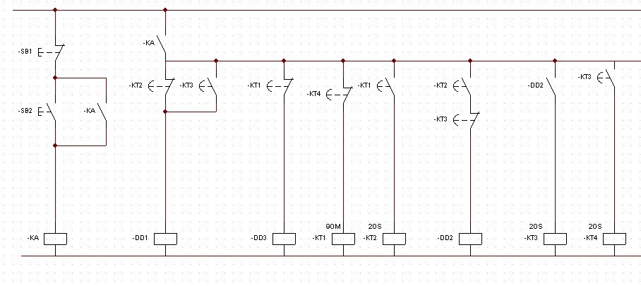 按下SB1,DD1和DD3同時閉合,延時90分鐘關閉DD3,再延時20S關閉DD1并開啟DD2,再延時20S開啟DD1,再延時20S回到開頭的狀態。一直循環……