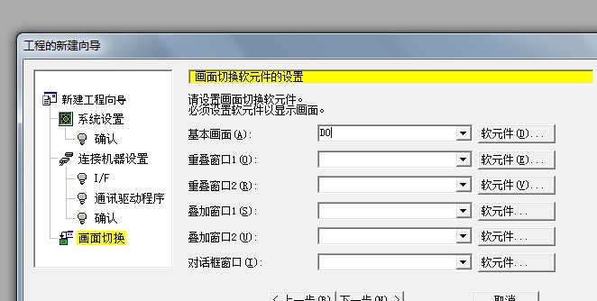 引用引用第10樓wsk01712于2010-12-31 12:34發表的 :我試了一下,(設置基本畫面(A)的軟元件為D0)是什么意思。是用切換畫面的開關嗎,我想M1接通時切換到畫面一,M2接通切換到畫面二,M3接通切換到畫面三,哪位老師能再指教一下嗎,沒搞明白,能做一個簡單的例子發絕給我嗎,我的PLC這三菱Q的,屏為三菱GT1175