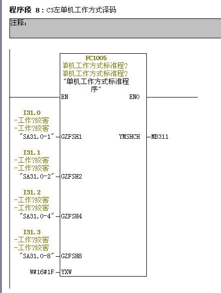 這是在一個程序中的程序段,求問這是什么意思??要詳解啊,思考了很久,也沒想出....... 如果i31.0有信號是不是,就執行GZFSH1? 后面的YMSHCH 、MB311什么意思啊 [ 此帖被wxlwxswnn在2011-03-18 20:24重新編輯 ] |