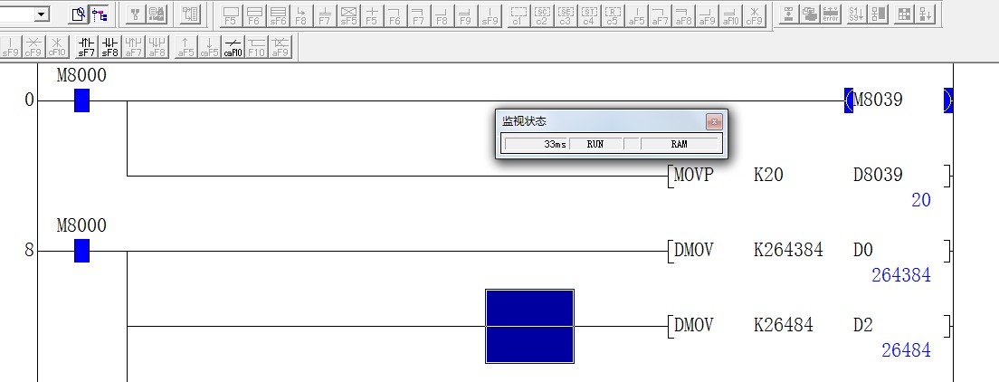 M8039 ON,以D8039設(shè)定的參數(shù)作為恒定的程式掃描時(shí)間.