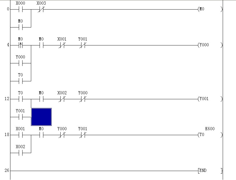 X0:啟動 Y0:電機正轉