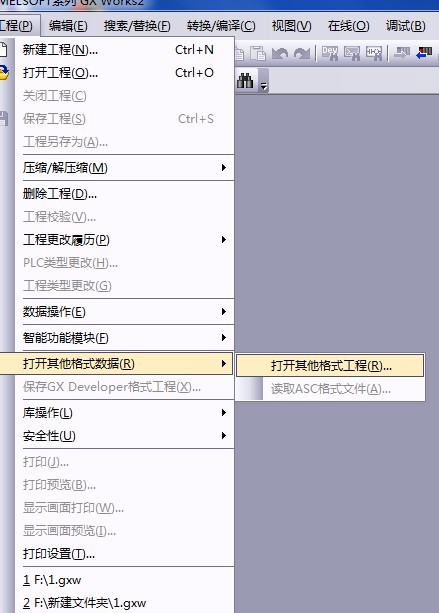 簡單,gxwork2里面點“文件”_“讀取其他格式文件”,再找到你要打開的老板本程序就可以了