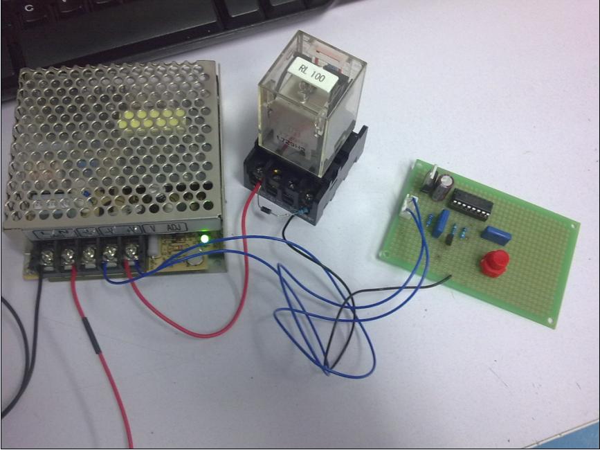 如果按鈕按下一次,出現(xiàn)計(jì)數(shù)不準(zhǔn),繼電器動(dòng)作好幾下時(shí),若電路連接無(wú)誤,那么可改變電路圖中的R3的阻值,從幾K到十幾K到幾十K。圖中R3用的是100K,但有時(shí)候同樣大小的電阻,焊另一塊板子的時(shí)候就不行。一旦調(diào)試焊接完成且調(diào)試完成,單按鈕交替輸出會(huì)很穩(wěn)定。主要是焊接和調(diào)試時(shí),合理的選取R3的阻值。